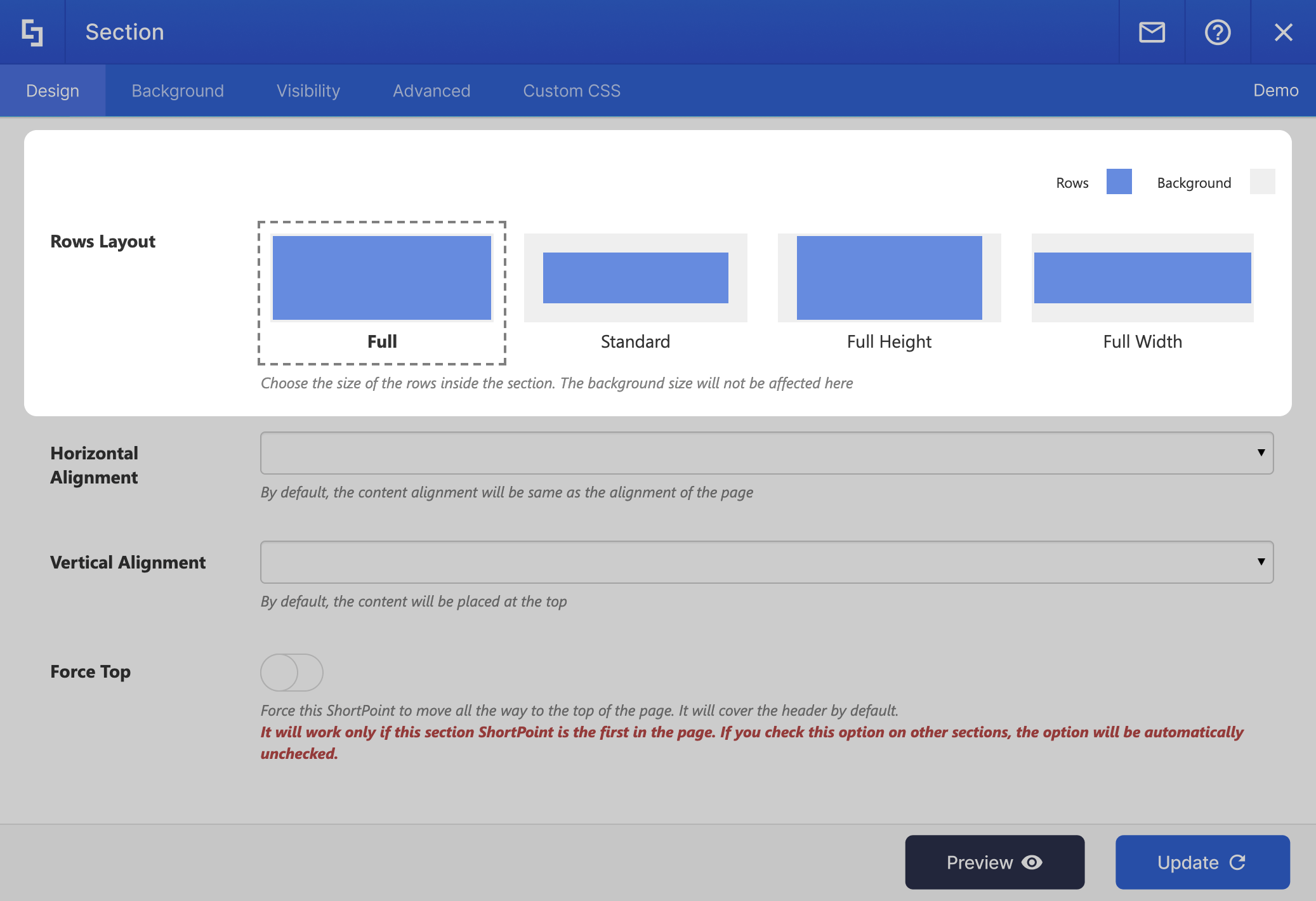 Freely adjust the height of the section and modify content alignment according to your requirements.