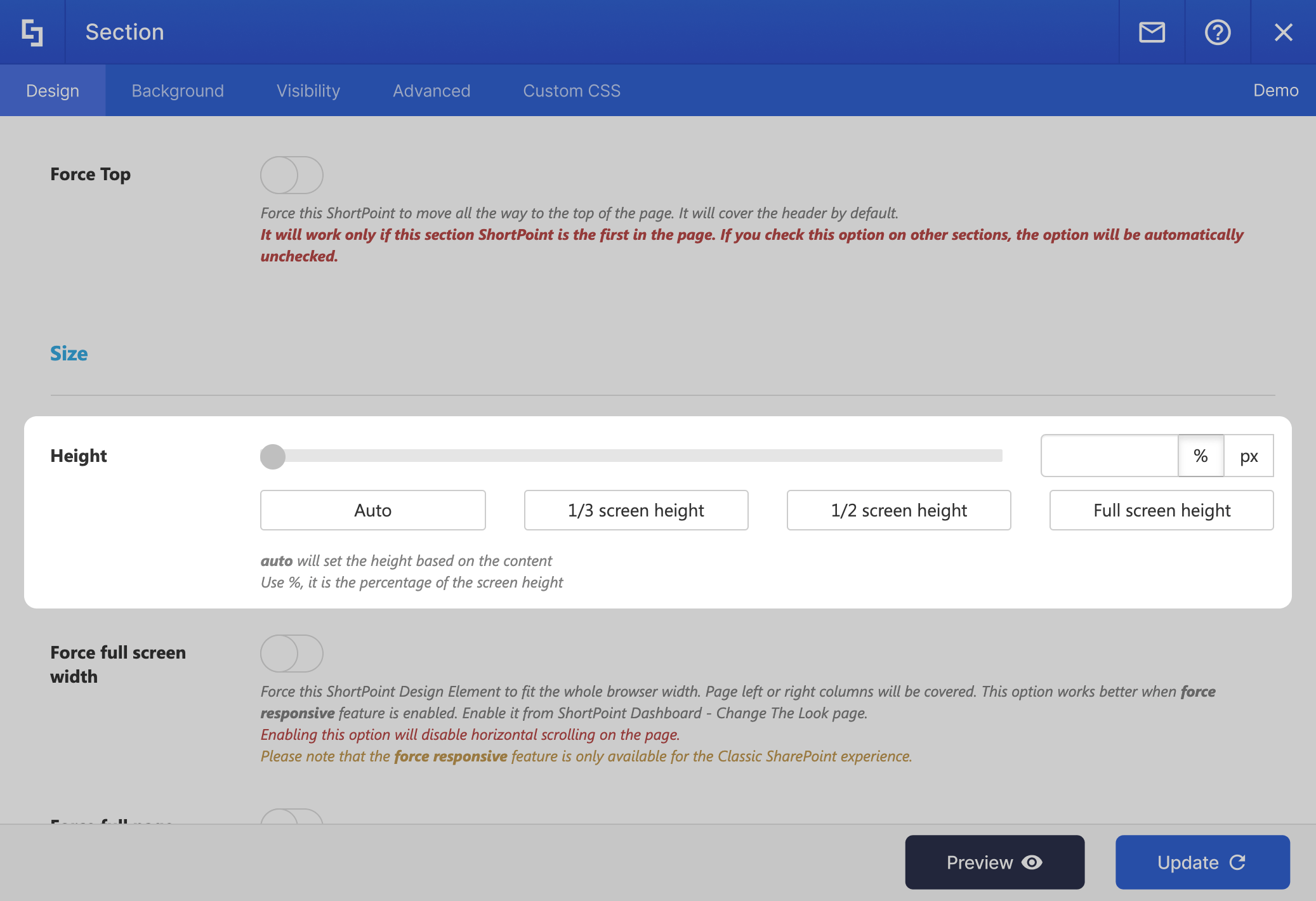 The main building block of the ShortPoint web part, use Section Design Element to organize your content into different parts and to define the main structure of your page layout. Gear up your intranet with flexibility on layouts and advanced customizations.