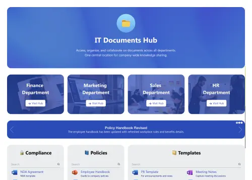 You can clone the Documents 2 template to create a new site for every department—from HR to Finance—a consistent, on-brand starting point. They can add their specific site content while the core design stays unified across your entire organization.
