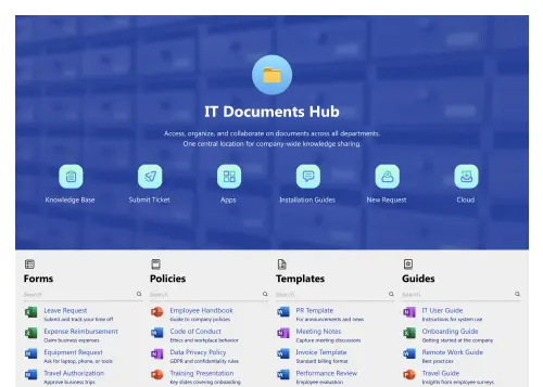 - 2Spin up a self-service portal featuring events and documents so employees access answers quickly during onboarding, restructures, or rapid hiring phases.