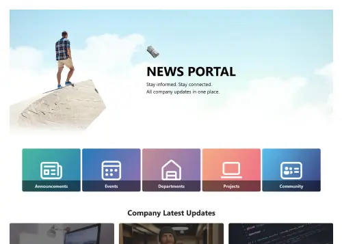 - 2Spin up a self-service portal featuring news and events so employees access answers quickly during onboarding, restructures, or rapid hiring phases.