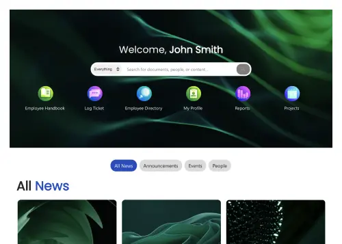 - 1Streamline self-service with quick tiles for news, sick leave, help desk, HR questions, planning, meetings, and courses, reducing tickets and wait times.