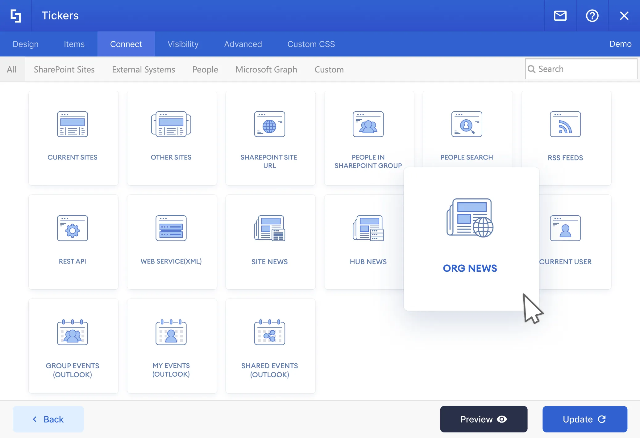 Monitor all SharePoint news pages published in your organization’s tenancy by using ShortPoint Connect. The Org News connection type allows you to pull content from news sources across all site collections and show it within your intranet page.