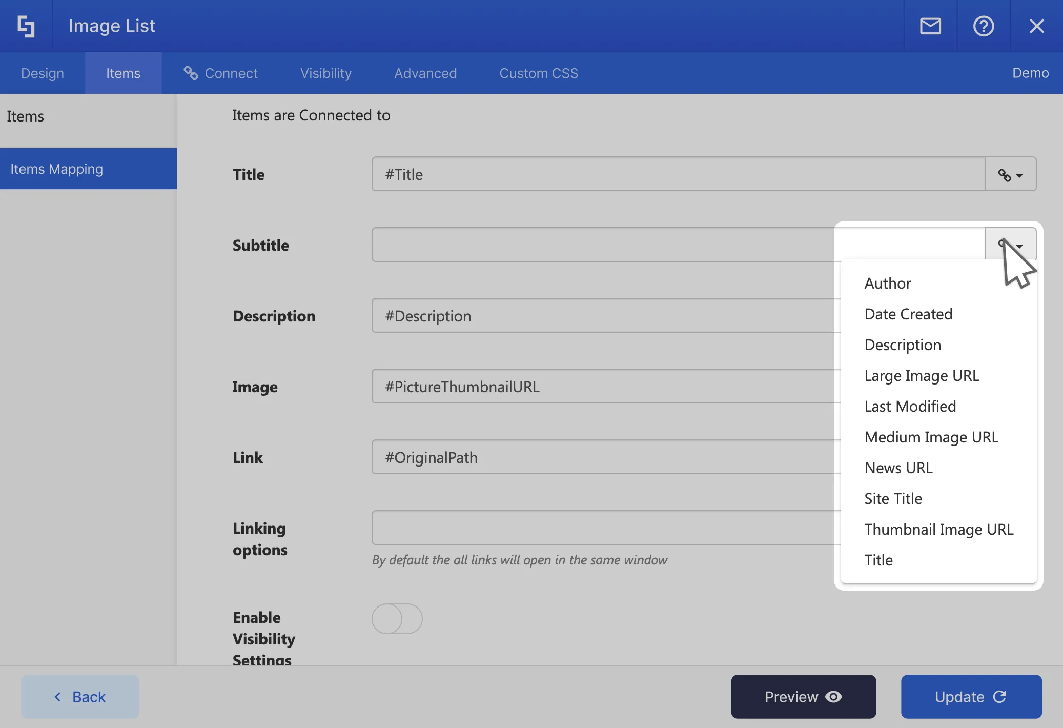 Map what information is shown where. Use the fields of the element to enhance the News information in the way you want it