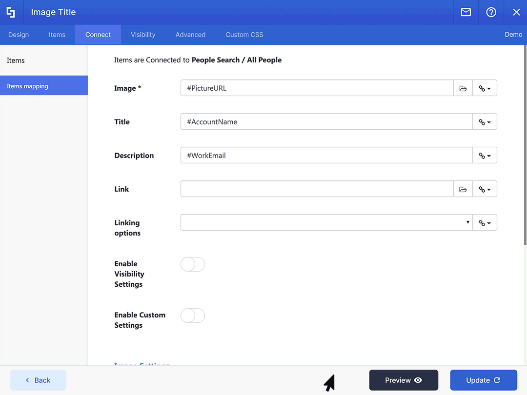 When updates are made int the employee directory and changes are crawled by ShortPoint, they will be auto-reflected in your connected elements.